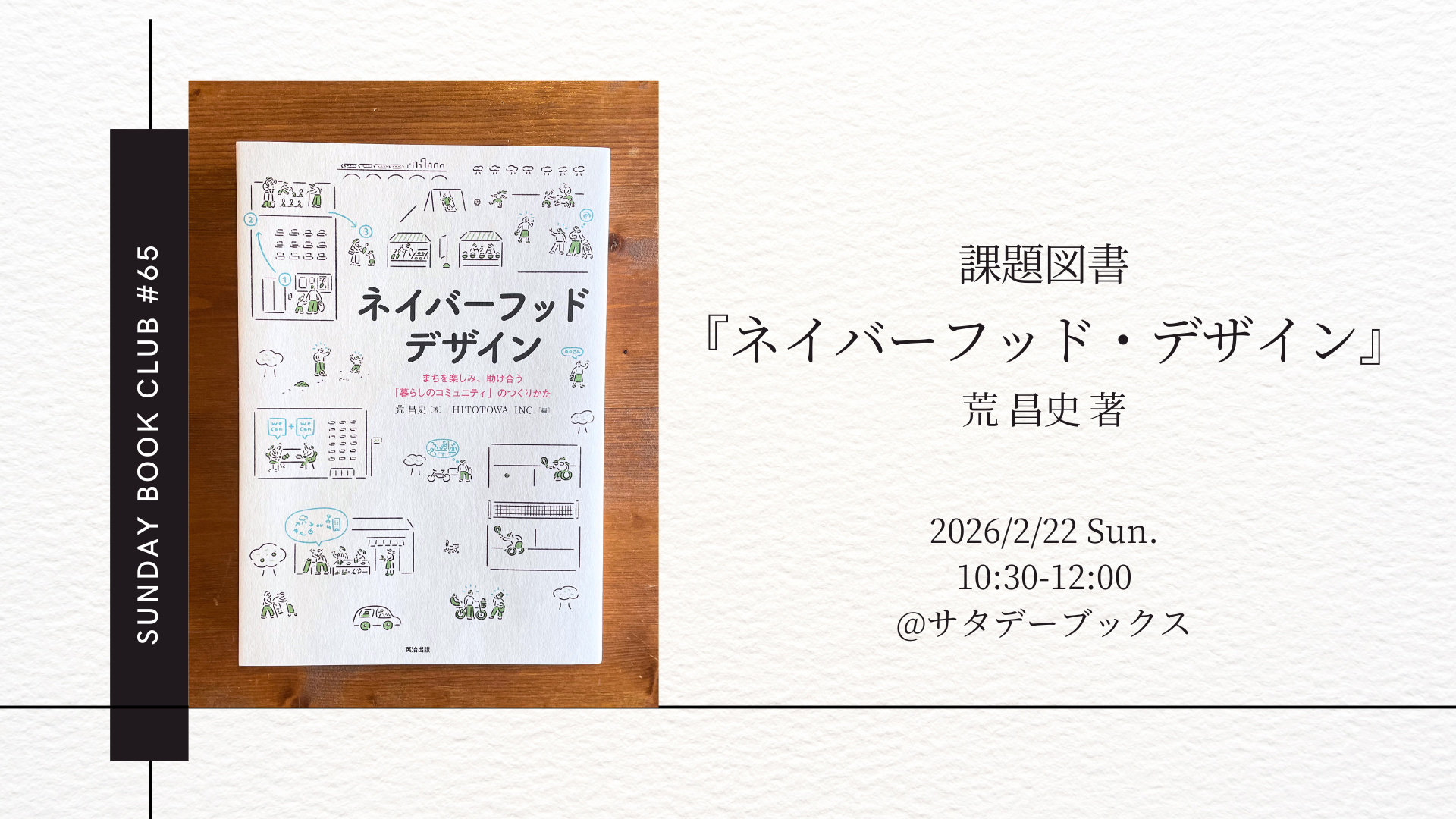2月はサタデーブックスの選書で 荒昌史(著), HITOTOWA INC.(編)『ネイバーフッドデザイン――まちを楽しみ、助け合う「暮らしのコミュニティ」のつくりかた』を課題図書とします。