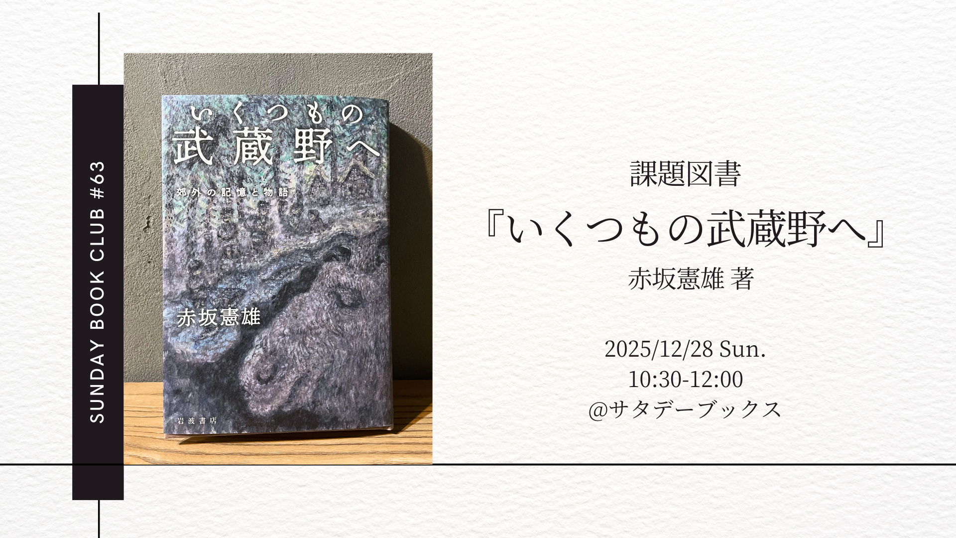 12月はサタデーブックスの選書で 赤坂憲雄著『いくつもの武蔵野へ 郊外の記憶と物語』課題図書とします。